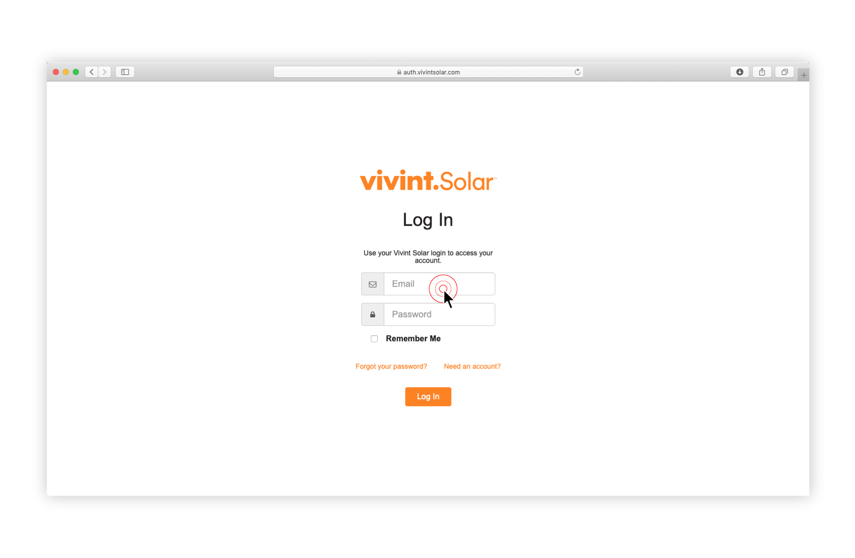 5. Go to your web browser and log in to Account Center.For more information about how to do that, check out Accessing and using Account Center. If you’re having trouble logging in, check out Help with Vivint Solar Account Center.